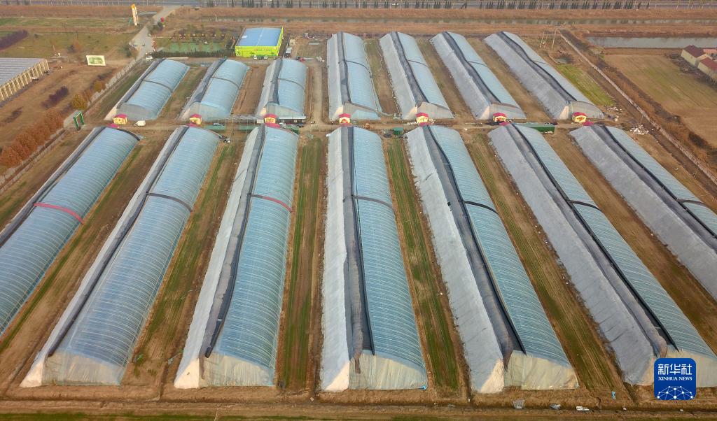 這是山東省臨邑縣臨南鎮的一處西紅柿種植大棚(11月21日攝,無人機照片)。