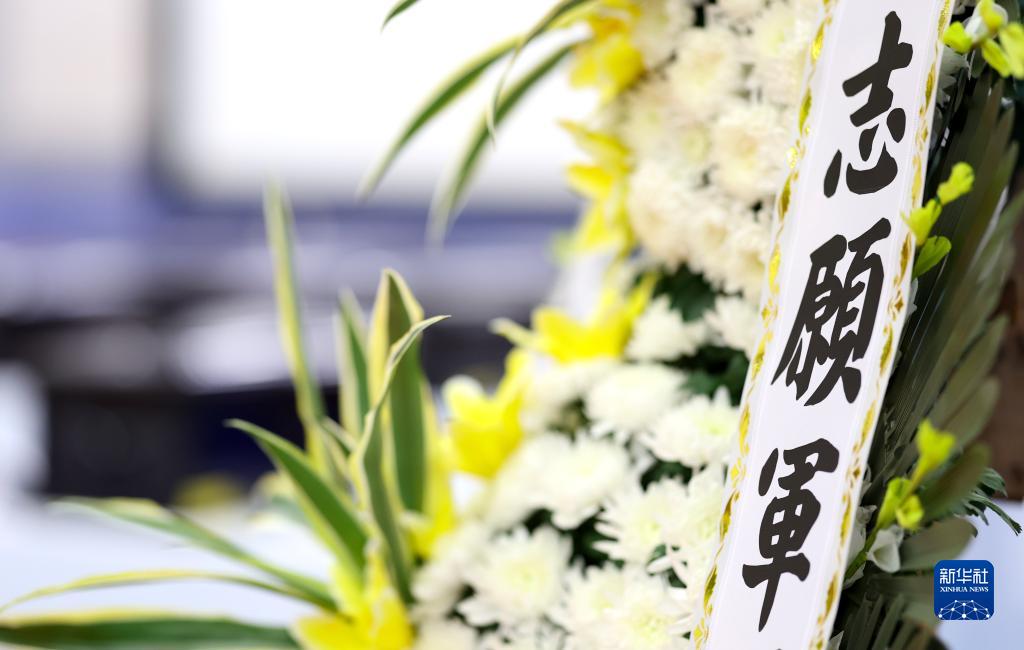 這是11月22日在韓國仁川舉行的第十批志願軍烈士遺骸裝殮儀式現場拍攝的花籃緞帶。