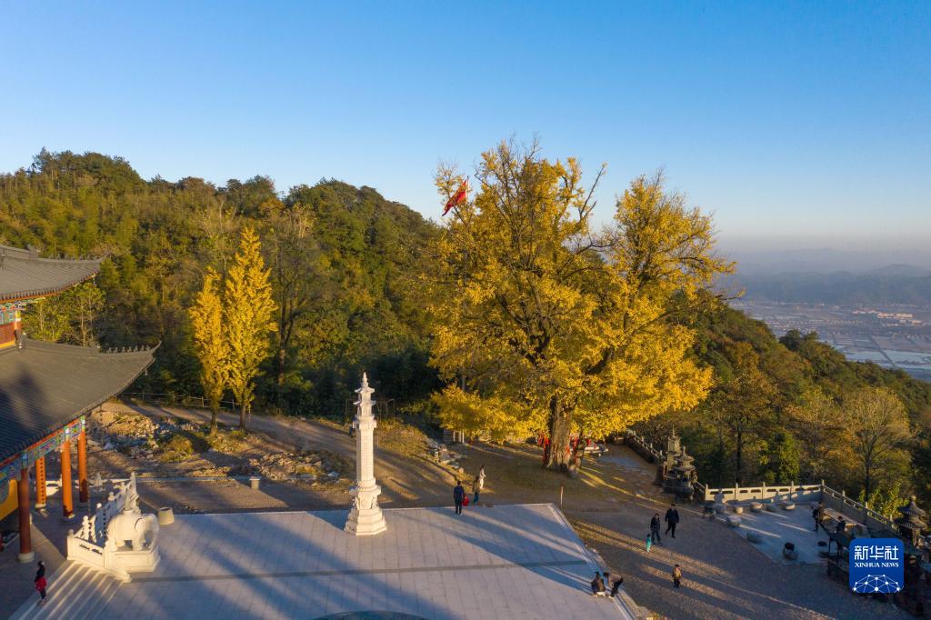 杭塢山位於浙江省諸暨市北部店口、次塢、姚江三鎮交界處,海拔500多米。初冬時節,杭塢山頂三德寺門外有着500年和300年樹齡的兩株古銀杏金黃滿樹,成為當地山鄉美麗的風景。