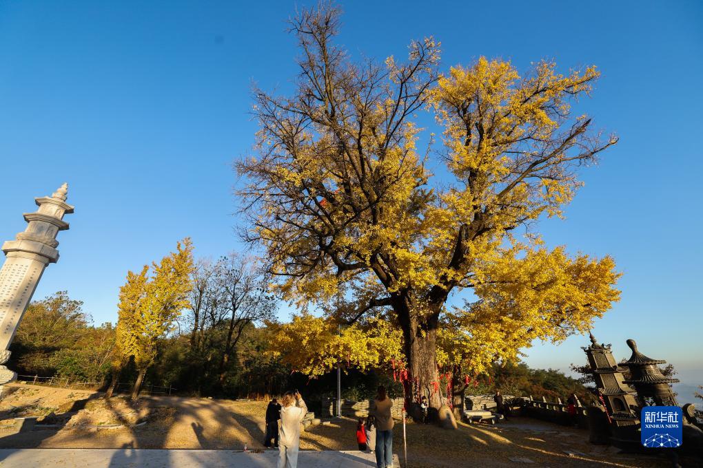 11月21日,游客在觀賞拍攝諸暨市店口鎮杭塢山頂的古銀杏樹。