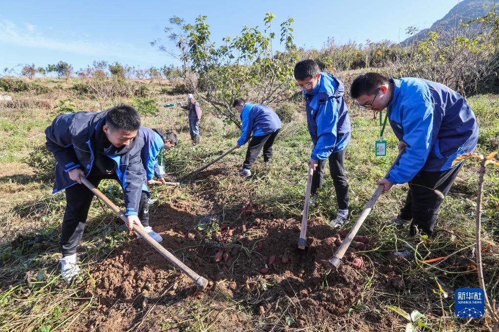11月22日,學生在趙家鎮花明泉村明樂果業實踐基地收番薯。