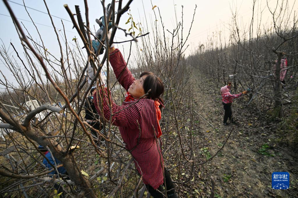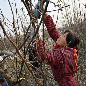 技術工人在威縣賀營鎮紅龍集村的梨園裏剪枝(11月21日攝)。