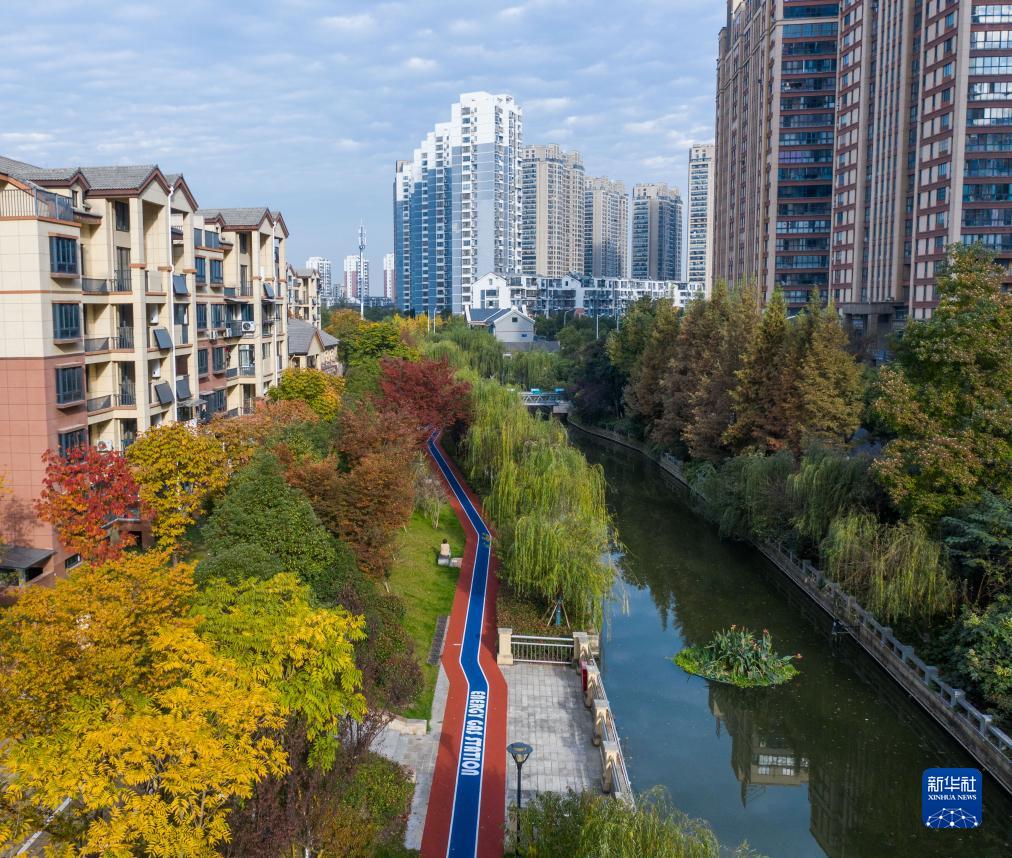 11月22日拍攝的龍泉街道新建成的環河健康步道(無人機照片)。