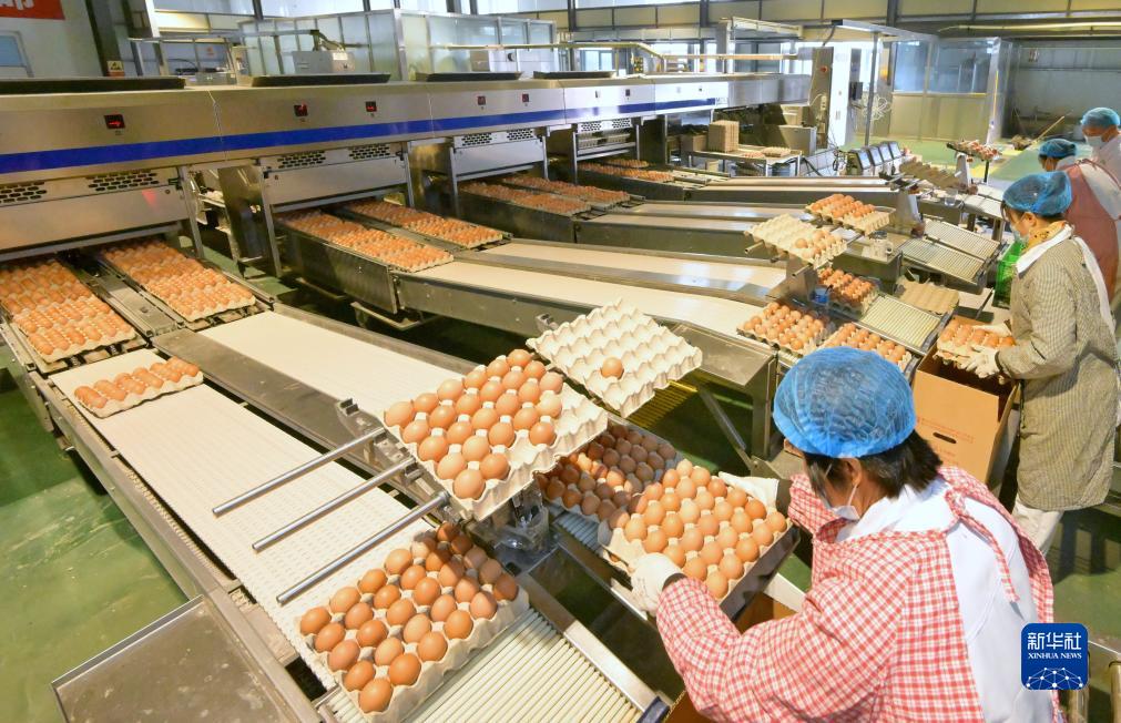 11月22日,工人在河北省唐山市蘆&經濟技術開發區一家蛋雞養殖企業的車間分揀雞蛋。