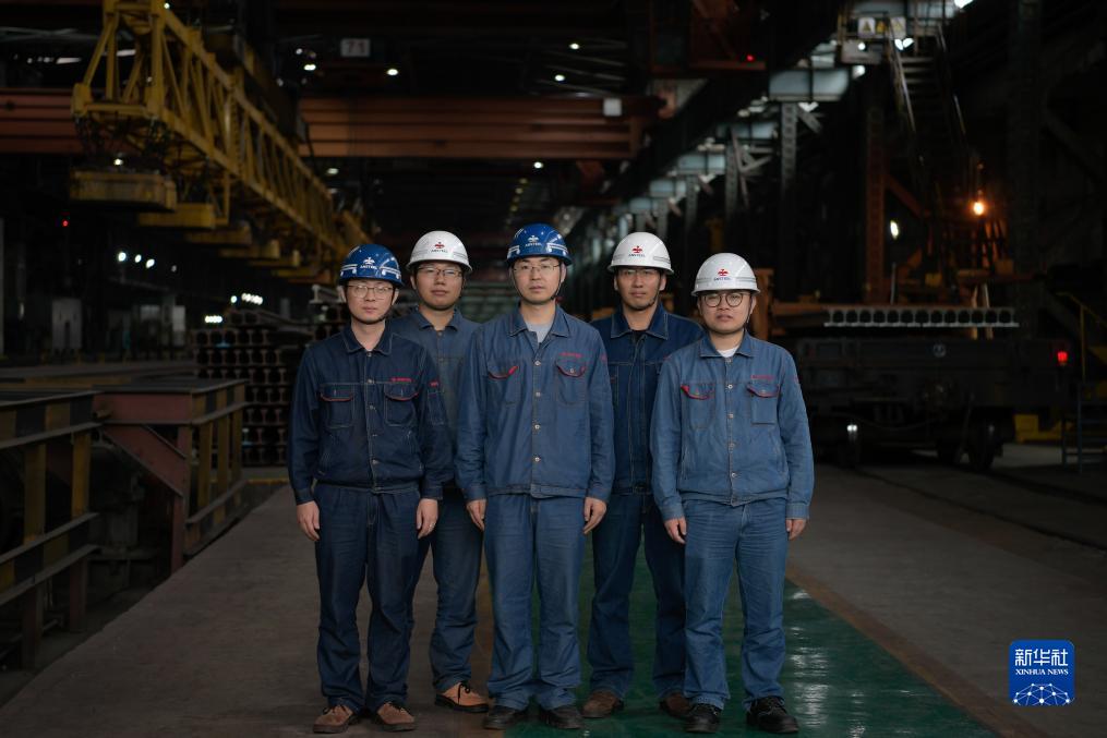 這是11月21日拍攝的呂攀峰(中)與攀鋼釩軌梁廠青年創新工作室部分成員。