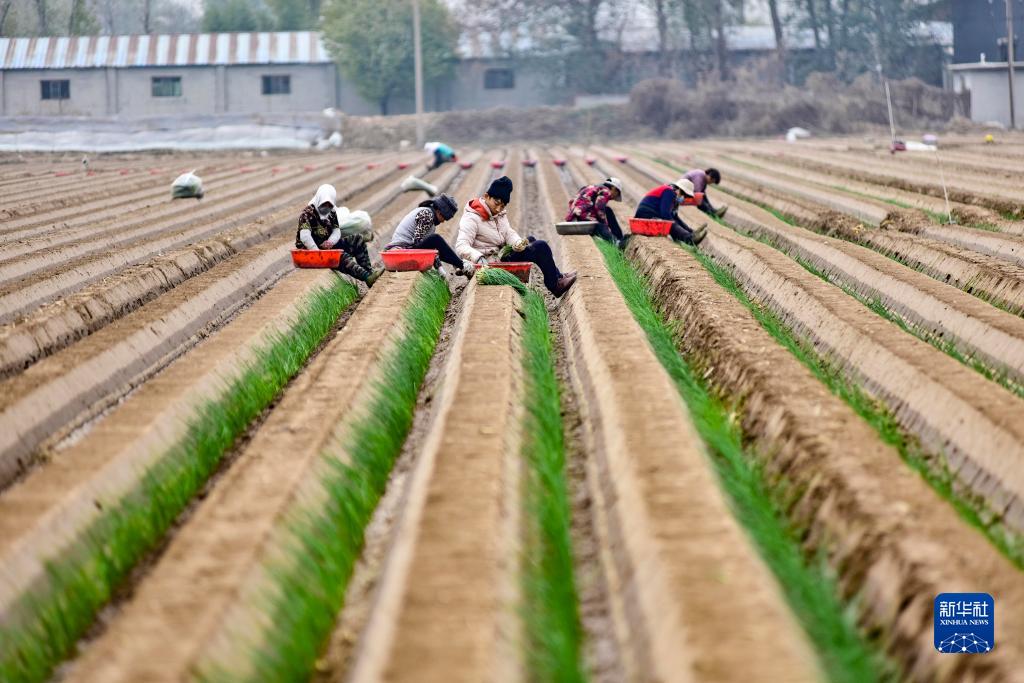 11月22日,在山東省青州市黃樓街道孫家村,村民在農田裏栽種蔥苗。