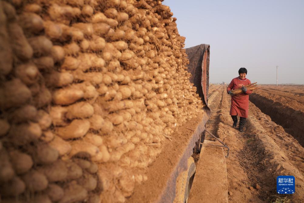 11月22日,農民在河北省邢&市內丘縣金店鎮麻山藥種植基地裏收穫麻山藥。