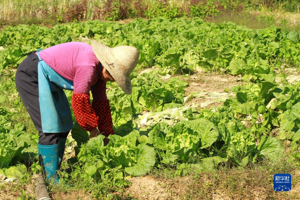 11月22日,福建省南平市順昌縣洋口鎮麻沙村農民在農田裏收穫蔬菜。
