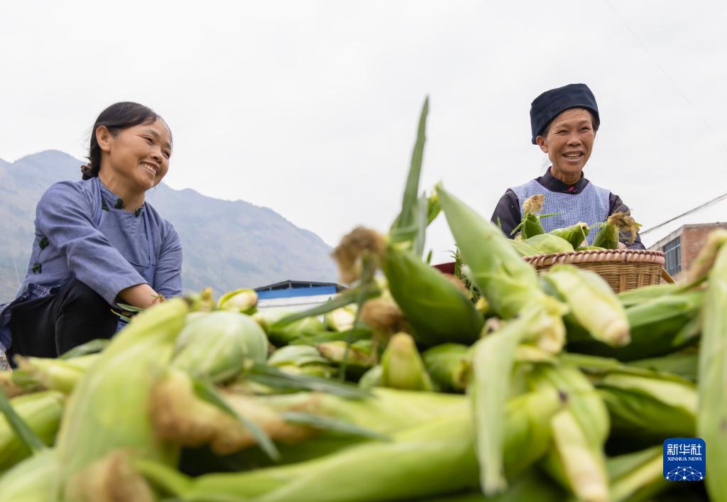 11月22日,村民在貴州省黔南布依族苗族自治州羅甸縣沫陽鎮訪裏村分揀鮮食糯玉米。