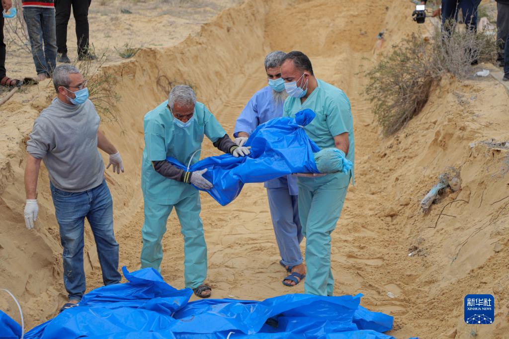 11月22日,人們在加沙地帶南部城市汗尤尼斯埋葬巴以衝突遇難者。