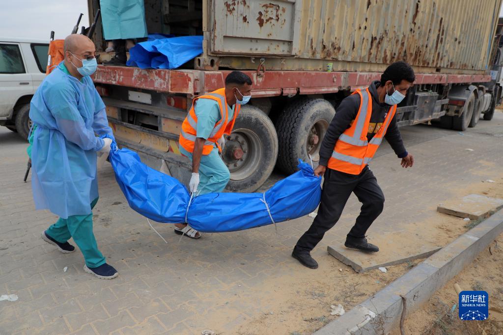 11月22日,人們在加沙地帶南部城市汗尤尼斯埋葬巴以衝突遇難者。
