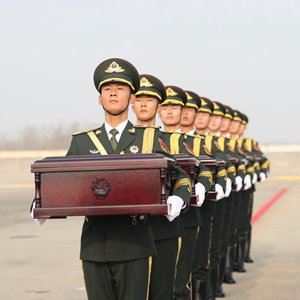 11月23日上午,中韓雙方在韓國仁川國際機場共同舉行在韓中國人民志願軍烈士遺骸交接儀式。中韓雙方代表現場簽署交接書,確認交接25位在韓中國人民志願軍烈士遺骸及相關遺物。