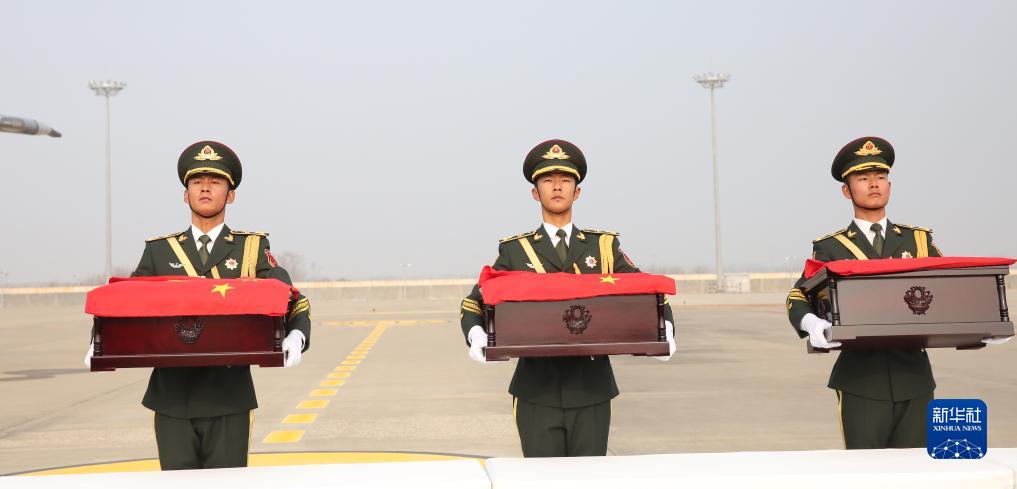 11月23日上午,中韓雙方在韓國仁川國際機場共同舉行在韓中國人民志願軍烈士遺骸交接儀式。中韓雙方代表現場簽署交接書,確認交接25位在韓中國人民志願軍烈士遺骸及相關遺物。