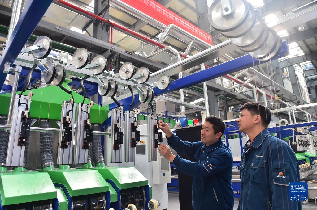 11月21日,在江西江銅華東電工新材料科技有限公司生産車間,技術工人在生産線上巡檢設備。