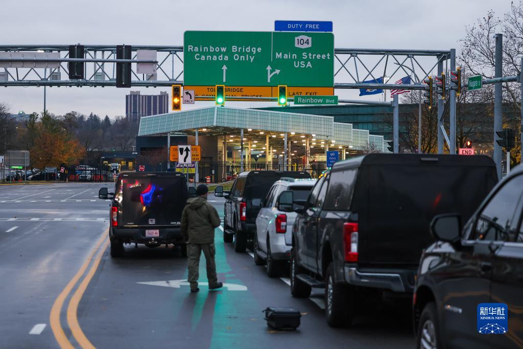 這是11月22日在美國紐約州尼亞加拉地區拍攝的美加邊境彩虹橋口岸。
