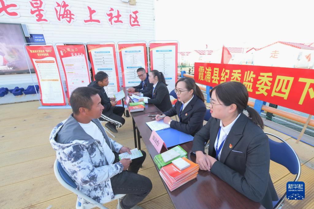 福建省寧德市霞浦縣溪南鎮七星海域,碧波蕩漾,航道寬闊,疾速行駛的快艇激起陣陣浪花,兩側是一片片現代化的養殖漁排。走進七星海上社區,黨群服務中心、志願服務站、海上綜治中心等設施一應俱全,工作人員正為海上居民提供法律諮詢、信訪接待、矛盾化解、水産養殖技術諮詢等服務。