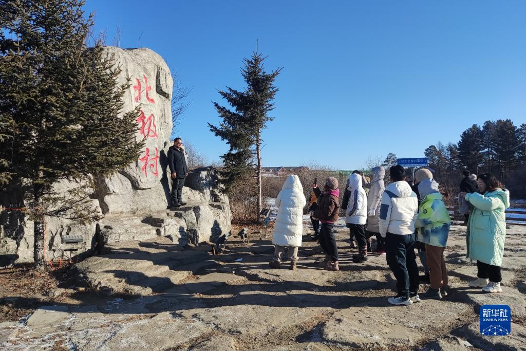 11月23日,游客在漠河市北極村游覽。