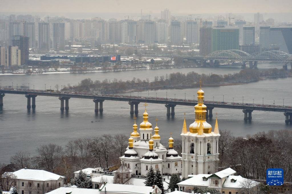 當日,烏克蘭首都基輔迎來今年冬季首場降雪。