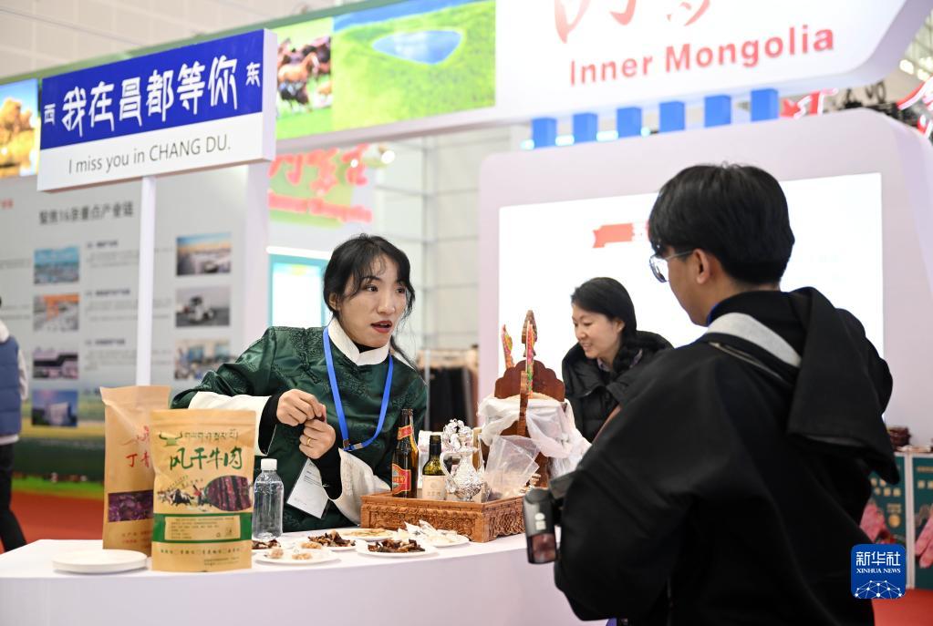 11月23日,參展商和參觀者在國家會展中心(天津)國內省市合作交流展區交流。