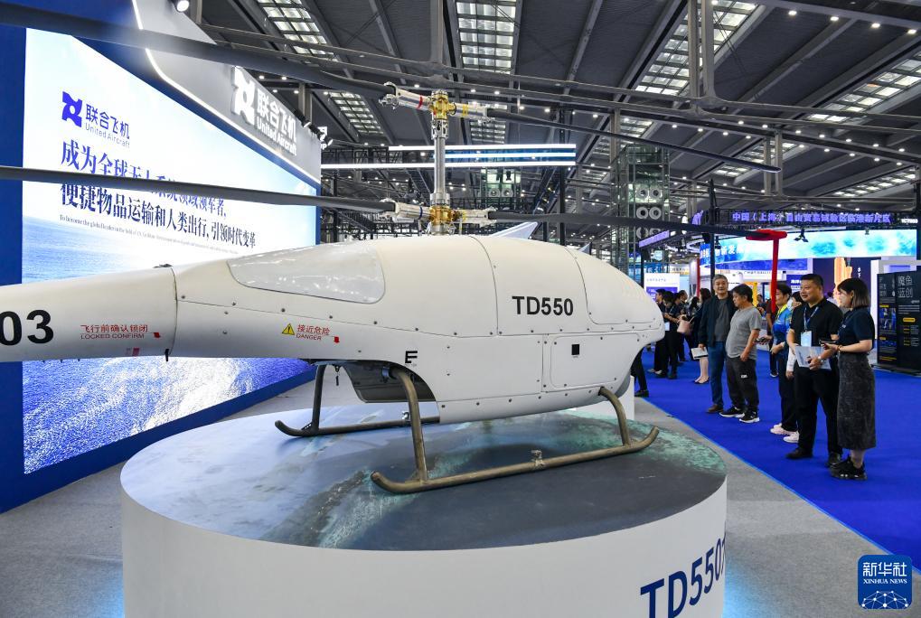 11月23日,觀眾在展覽現場了解一款無人直升機。