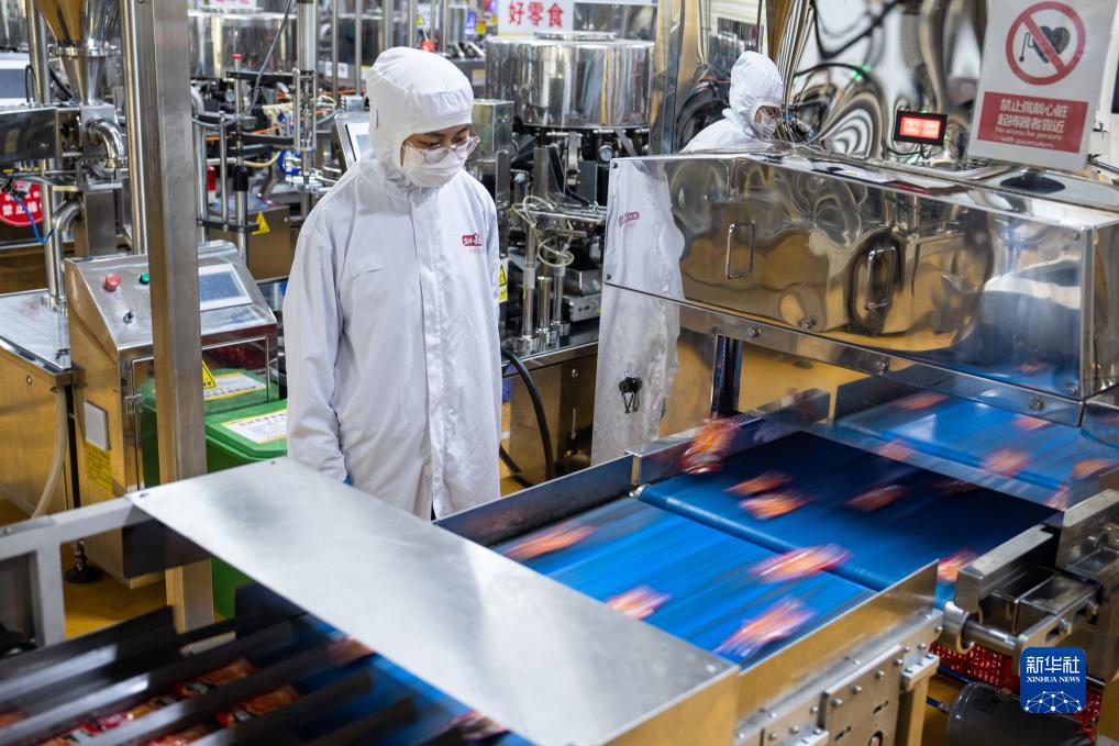 11月23日,在鹽津舖子瀏陽生産基地,成品正在通過X光機進行異物檢測。