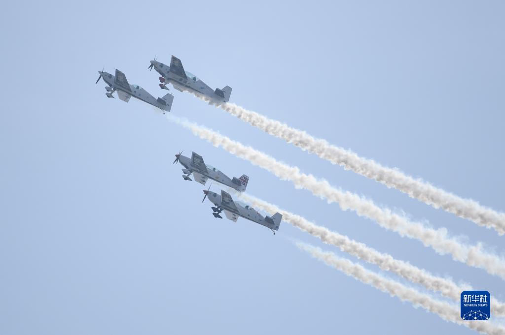 當日,2023亞洲通用航空展在珠海國際航展中心舉行。開幕式上,歐洲“穿越騎士”飛行表演隊、山河飛行表演隊、交通運輸部南海第一救助飛行隊等進行了飛行表演,為觀眾帶來了精彩紛呈的視覺盛宴。