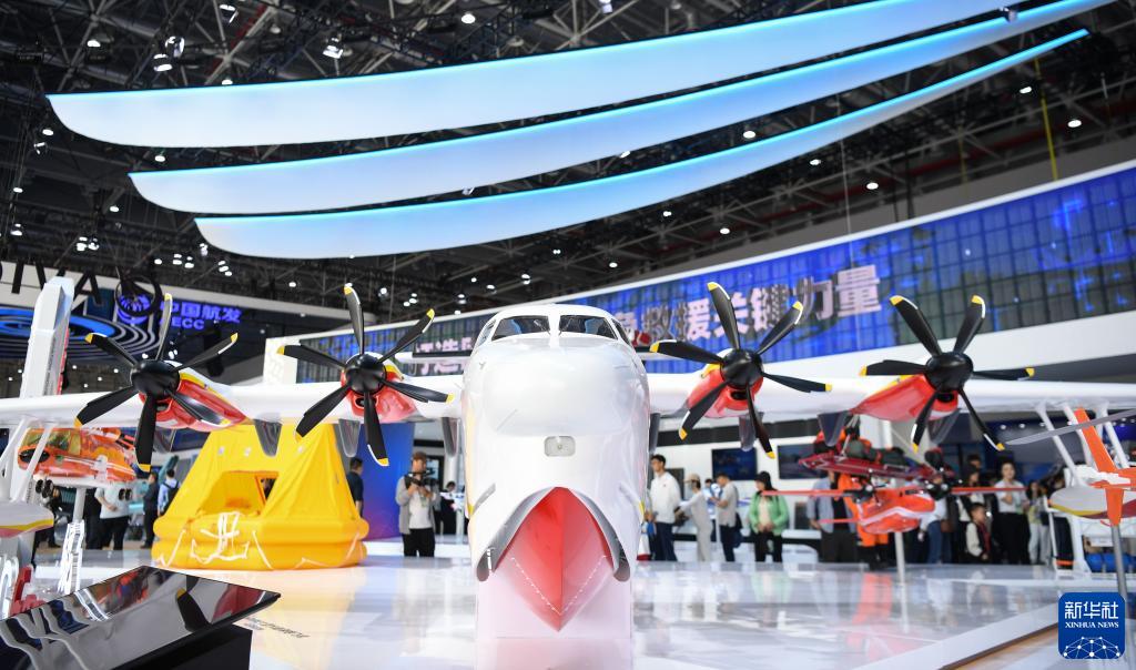 11月23日,觀眾參觀中航工業展&上的AG600M鯤龍飛機模型。