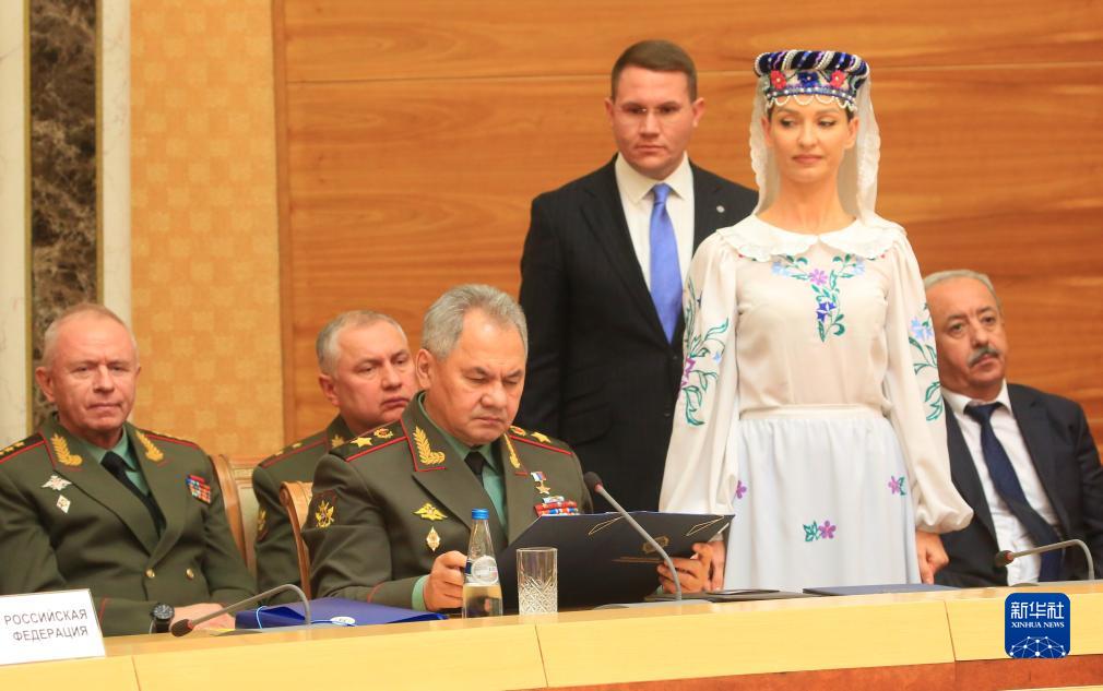 11月22日,在白俄羅斯首都明斯克,俄羅斯國防部長紹伊古(前左)出席聯席會議。