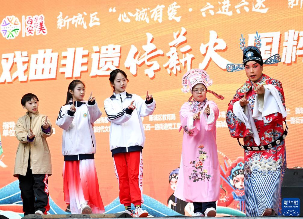 當日,西安市新城區“戲曲非遺傳薪火 國粹文化立自信”新時代文明實踐進校園活動在西安易俗社文化街區舉行。西安市新城區西一路小學的百餘位師生聆聽秦腔經典曲目,感受傳統戲曲文化魅力。