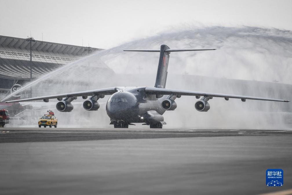 11月23日,在瀋陽桃仙國際機場,運送志願軍烈士遺骸的空軍專機通過水門。
