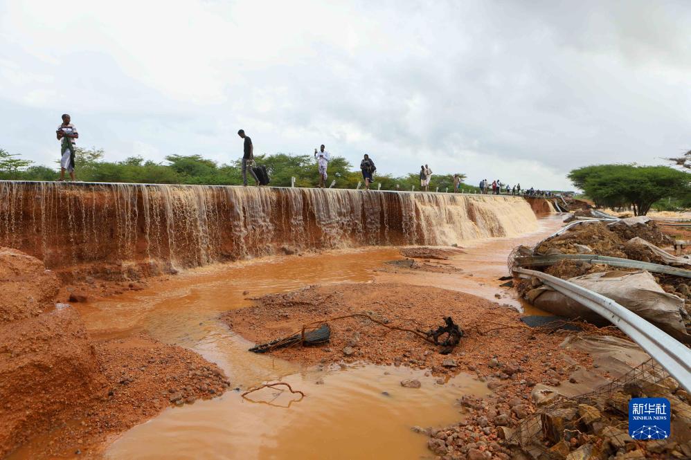 11月22日,人們走過被洪水沖毀的肯尼亞北部一條道路。