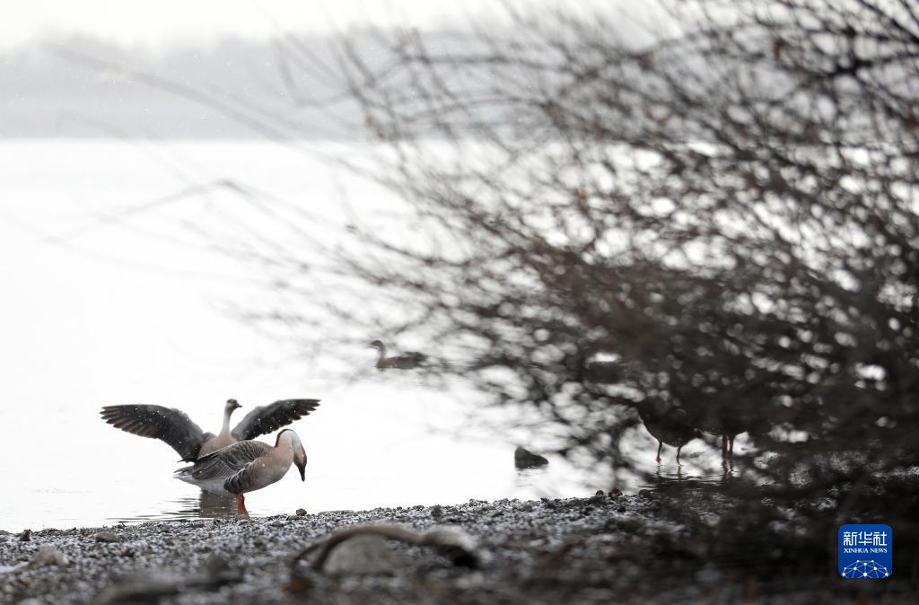 11月23日,候鳥在瀋陽渾河灘地上棲息。
