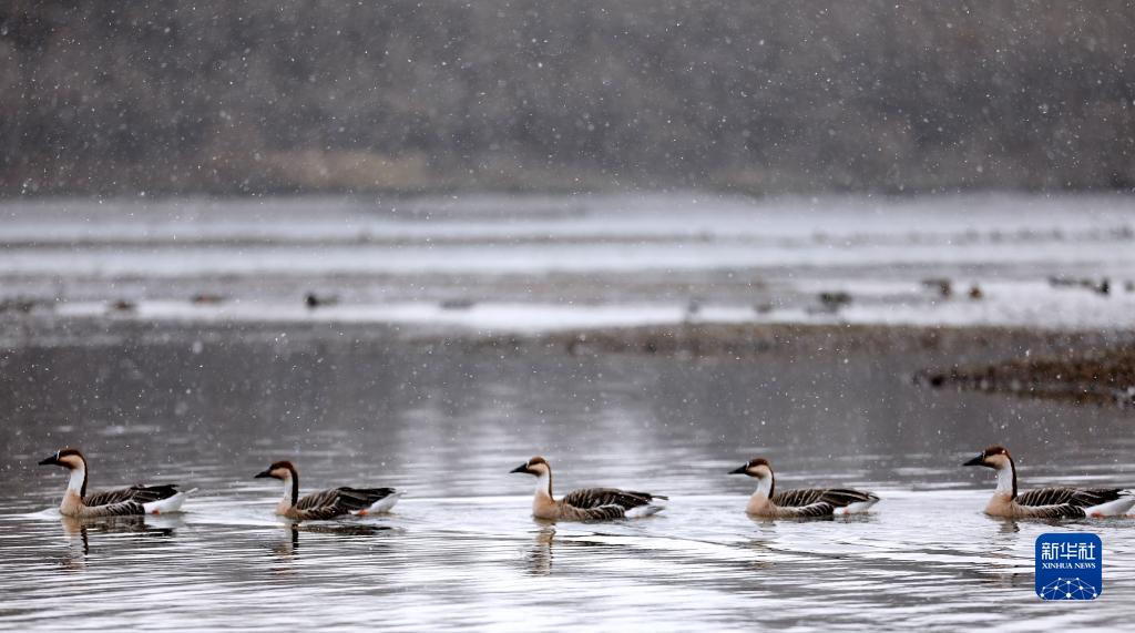 近日,在遼寧省瀋陽市渾河上,一群群鴻雁、赤麻鴨、鴛鴦等候鳥遷徙來此棲息。它們成群結隊在河面上覓食、休憩,成為冬日裏一道美麗的風景線。