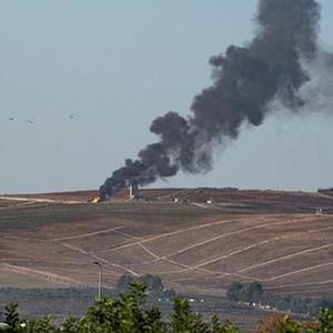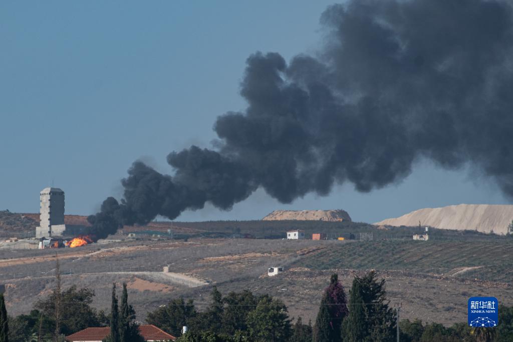 這張11月23日從黎以邊境以色列一側拍攝的照片顯示,黎巴嫩南部地區遭以軍襲擊後升起濃煙。