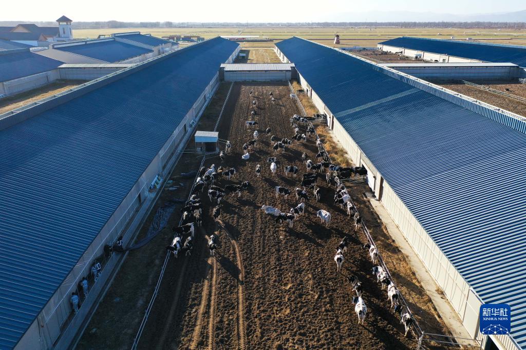這是11月23日拍攝的呼和浩特市伊利敕勒川生態智慧牧場(無人機照片)。