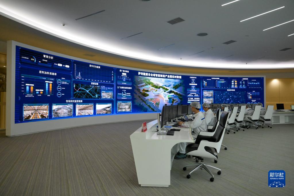 11月23日,在呼和浩特市伊利現代智慧健康谷液態奶全球智造標杆基地,工人在監測設備運行。