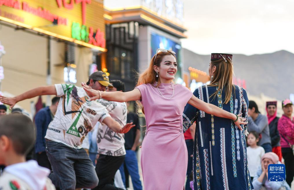 人們在新疆塔什庫爾幹塔吉克自治縣跳舞(8月31日攝)。