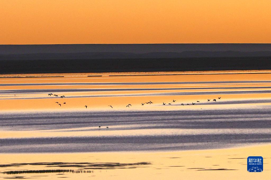 阿爾金山國家級自然保護區依協克帕提湖的候鳥(9月12日攝)。