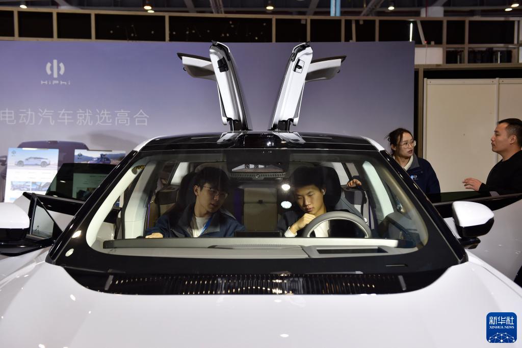 11月24日,在第二屆全球數字貿易博覽會數智出行館,觀眾體驗高合電動汽車。