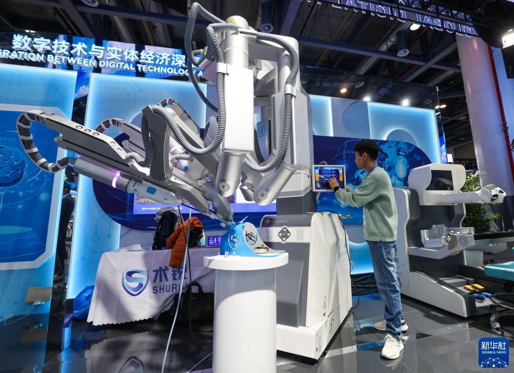 這是11月24日在第二屆全球數字貿易博覽會上拍攝的遠程醫療手術設備。