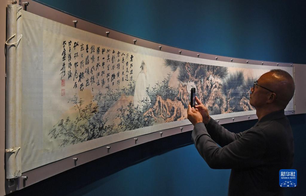 11月24日,在香港會議展覽中心,觀眾拍攝張大千作品《天&道者》。
