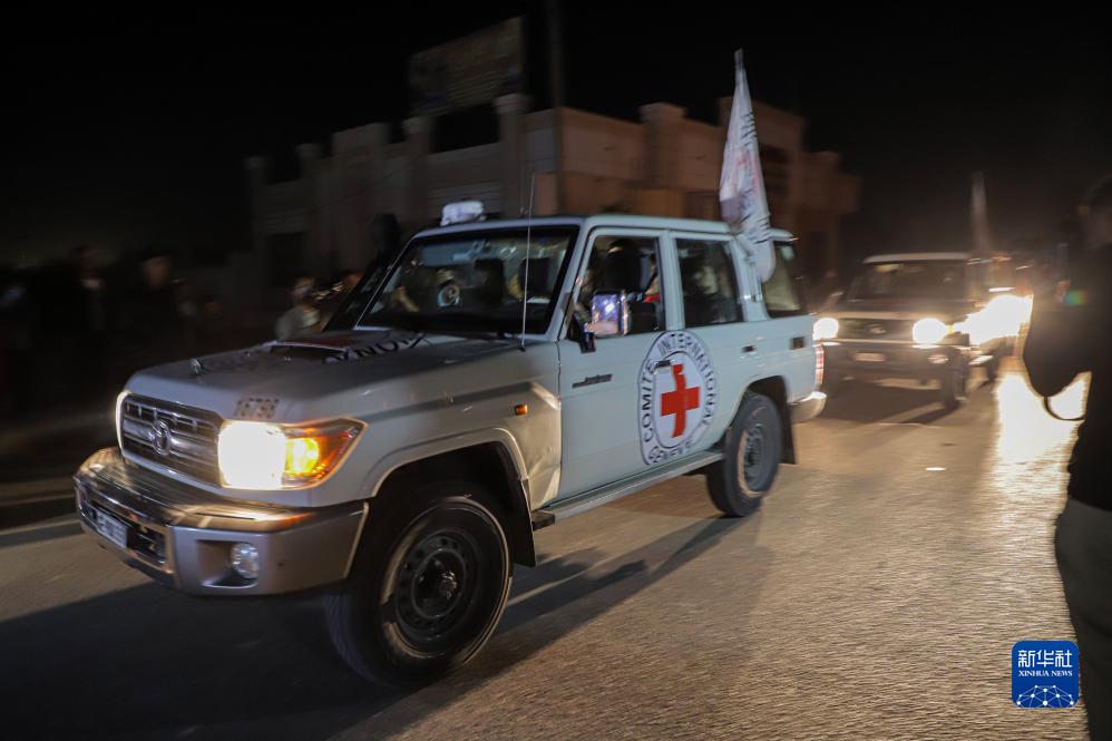 11月24日,紅十字國際委員會工作人員將被釋放人員送往加沙地帶南部拉法口岸。