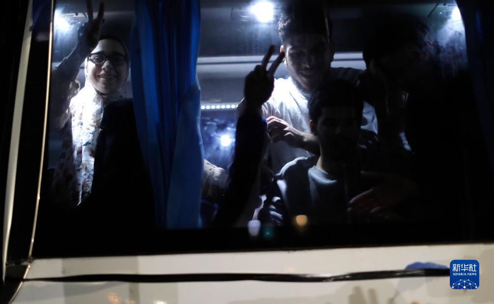 11月24日,在約旦河西岸城市拉姆安拉附近的拜圖尼亞鎮,獲釋的巴勒斯坦人乘車離開。