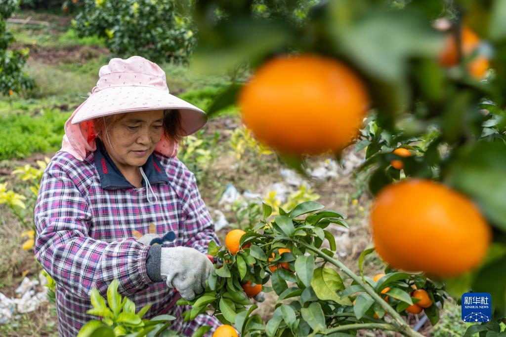 11月24日,在重慶市開州區竹溪鎮大海村的一個柑橘種植基地,村民在採摘砂糖橘。