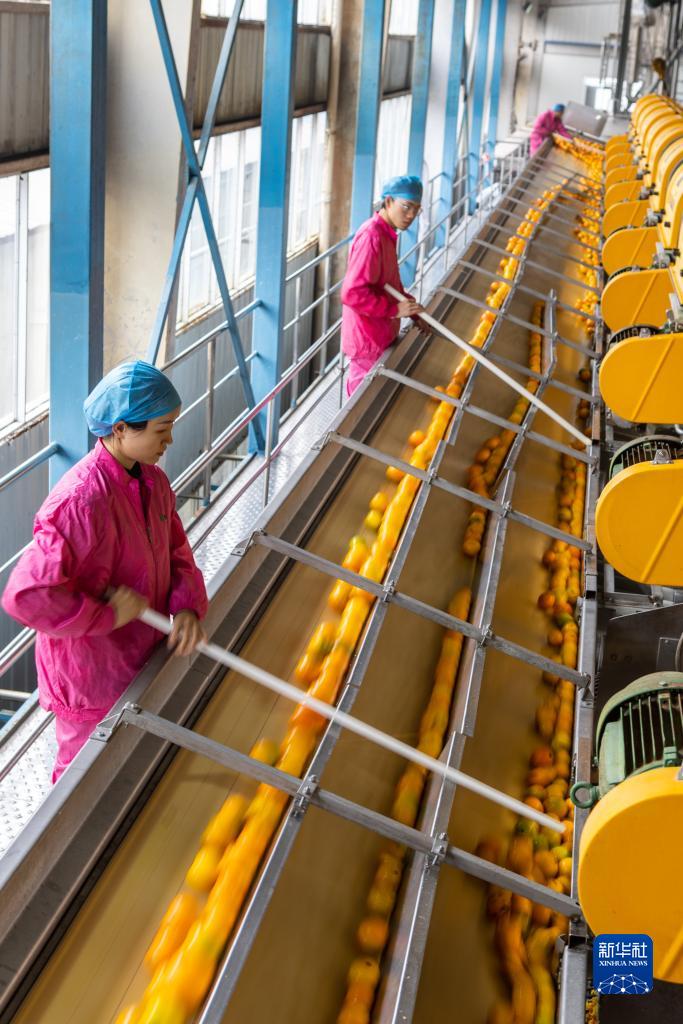11月24日,在重慶市開州區,工人在重慶天邦食品有限公司的榨汁車間作業。