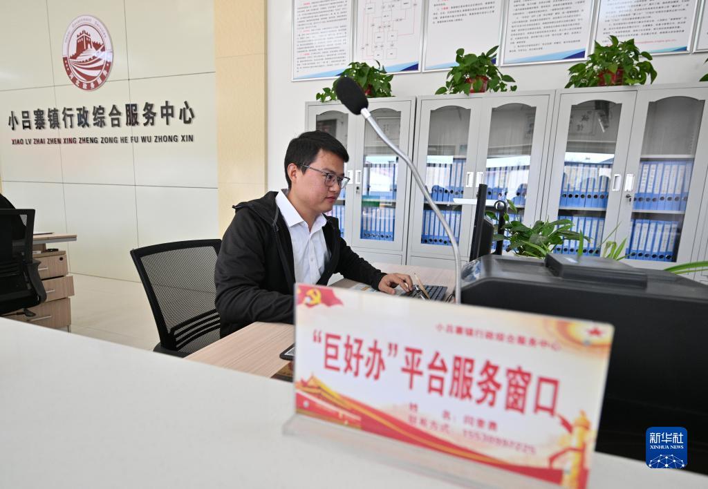 在巨鹿縣小呂寨鎮行政綜合服務中心,工作人員閆奎勇在“巨好辦”平台服務窗口處理平台相關事件(11月23日攝)。