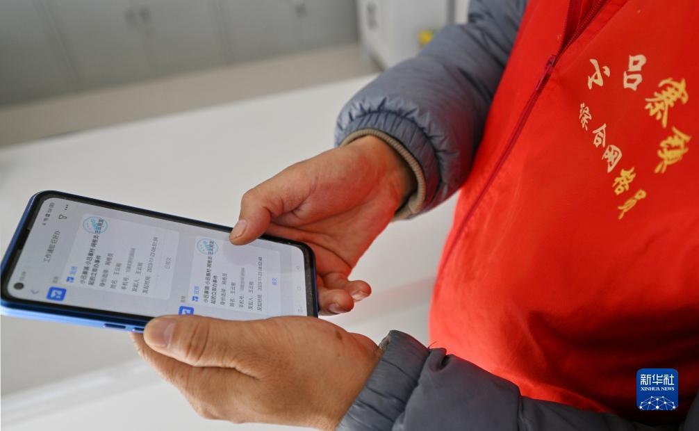 巨鹿縣小呂寨鎮小呂寨村網格長呂和勇在手機上查看“巨好辦”系統收到的通知(11月23日攝)。