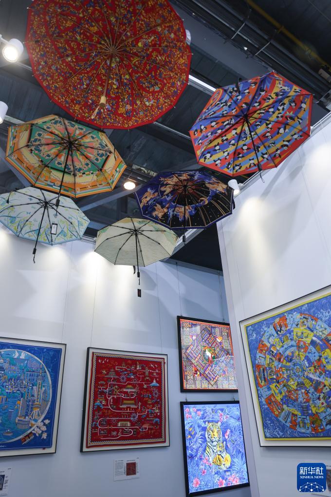 這是第二屆全球數字貿易博覽會的絲路電商館的絲綢主題展&(11月24日攝)。