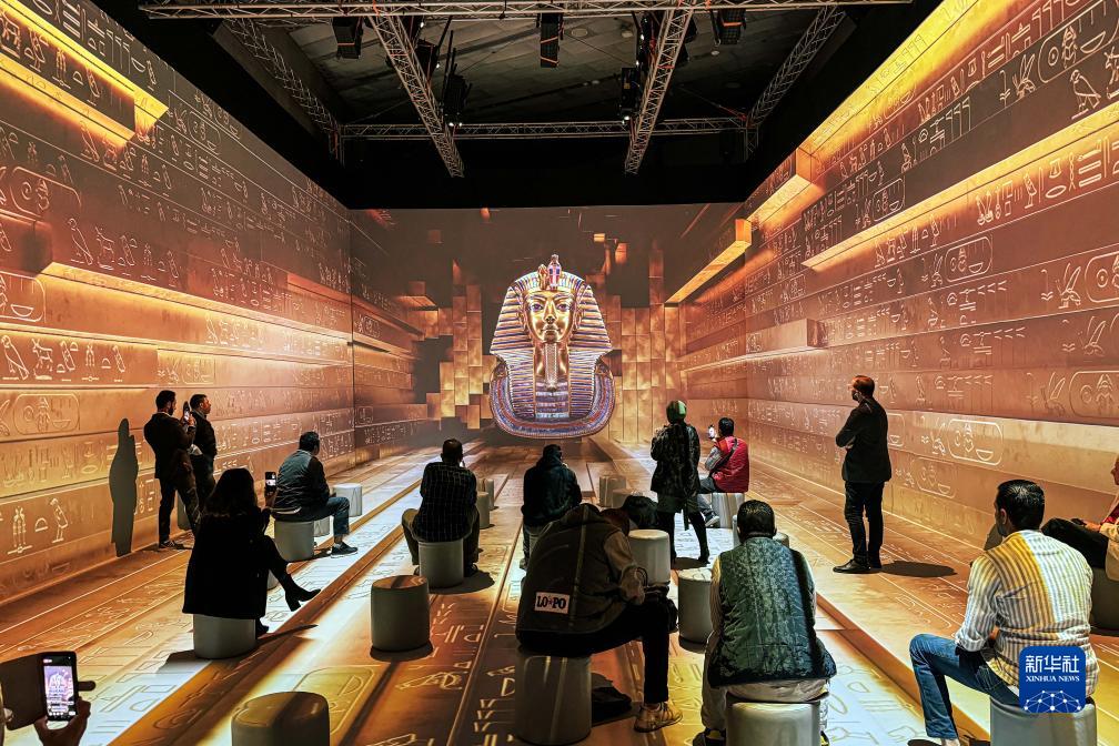11月20日,人們在埃及吉薩的大埃及博物館參觀圖坦卡蒙沉浸式展覽。