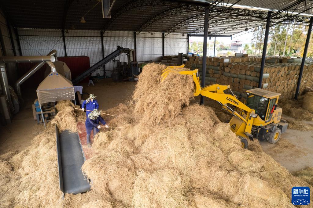 近日,在湖南省益陽市南縣武聖宮鎮沿河堤村的稻草飼料化項目現場,工人們忙着將成捆秸稈進行打散篩選,送入飼料化生産線。秸稈經過切碎、震蕩過篩、風選除塵、壓縮打包等工序後,即可成為牛羊飼草。據悉,該基地每年秸稈離田收儲能力可達1萬噸、年飼料化加工能力8000噸,每噸毛利潤約400元。